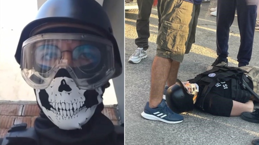 Medios internacionales indicaron que todo ocurrió el lunes, 12 de agosto. En las imágenes se aprecia que el joven tenía el rostro cubierto y, según testigos, tenía un hacha, un gran cuchillo, un casco y un chaleco antibalas.