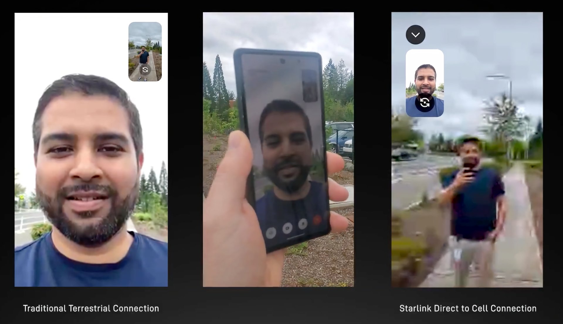 En concreto, la cuenta de X (Twitter) de Starlink ha publicado un vídeo en el que se muestran a dos trabajadores de la compañía realizar una videollamada a través de la red social de Elon Musk utilizando la función de conexión satelital directamente al smartphone. Mientras que en el otro smartphone se utiliza una conexión terrestre tradicional.
