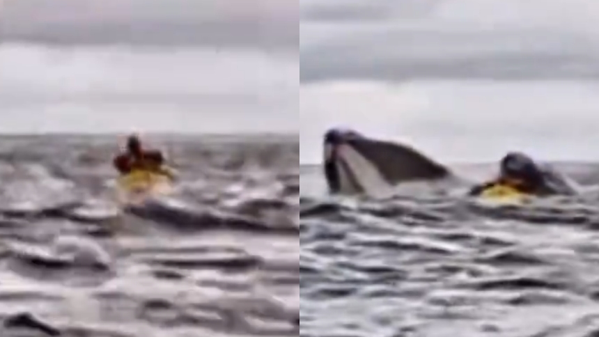 El cetáceo mantuvo al joven en su boca durante varios segundos y luego lo expulsó a la superficie. «Vente, vente, tranquilo agarra el bote. No te subas. Agárralo», se escucha que dice el padre del joven.