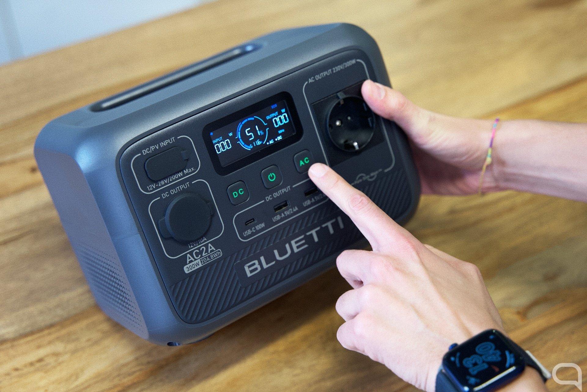 BLUETTI AC50B, también disponible en AliExpress: es de las más conocidas del mercado. Tiene una capacidad de 448Wh (22,4V, 20Ah) y una potencia de 700W. Ofrece más de 3000 ciclos de carga manteniendo una capacidad del 80% y mantiene su autonomía al 80% durante 3 meses. Tienes 3 USB, incluyendo un tipo C, dos salidas AC y DC y una entrada DC. Admite carga solar.