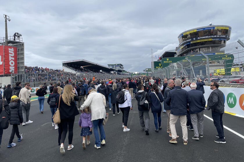 Cuesta andar y moverse. Nos damos codazos para poder ver de cerca un coche. En la parte trasera, los LMGT3, una nueva categoría para los GT en el Mundial de Resistencia. Por delante, los LMP2, una categoría que se pierde para la próxima temporada y que daba gusto escuchar a pleno rendimiento. Y, en el extremo opuesto, junto a la línea de salida, los 23 Hypercar que atraen la mayor parte de las miradas.