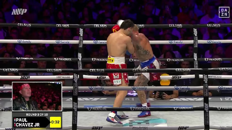 Round 2: Chávez sigue sin tirar golpes. Paul conecta más puñetazos y mantiene la distancia con su jab de izquierda