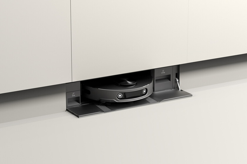 Estamos frente a una propuesta que no solo busca discreción, también comodidad. La puerta de la estación se abre y se cierra automáticamente para que el robot pueda entrar y salir sin intervención del usuario. De este modo, la experiencia de limpieza se vuelve completamente manos libres, en una línea distinta a la de otros aspiradores que siguen dependiendo de estaciones voluminosas a la vista.